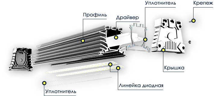 В настоящее время, компания производит модульные светодиодные светильники серии GLED Bar, в основе которых лежат базовые светодиодные модули мощностью 50,60,100,120 Ватт, разработанные штатными специалистами.